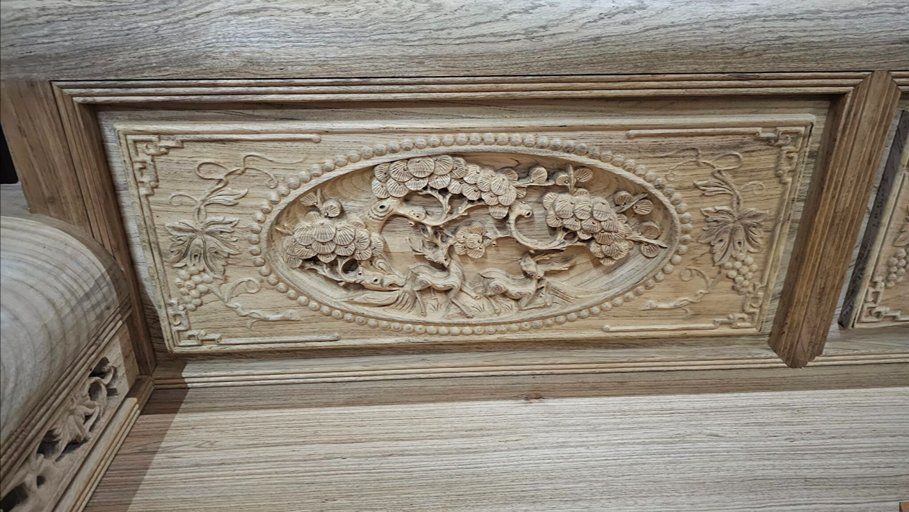 Độ tinh xảo: Các đường nét đục kênh bong, sắc sảo, tạo độ sâu và hồn cho từng cánh hoa, tán lá.